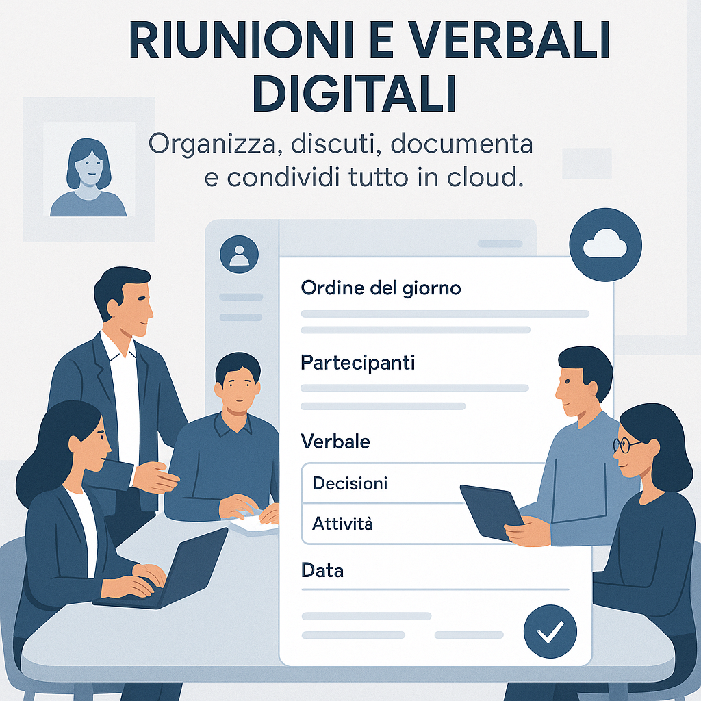 Redigi verbali digitali completi, archiviati e condivisibili in cloud.